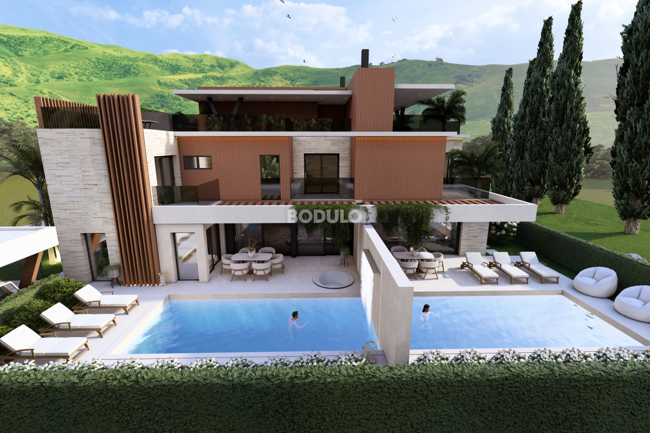 Each apartment is conceived as an independent unit spread over the ground floor of approximately 94 m² and the first floor of 77 m² for Apartment 1, while the first floor of Apartment 2 has an area of 82 m². Both apartments have their own private rooftop terrace of approximately 80 m², offering a beautiful view of the sea and the surrounding island landscape. The ground floor features a spacious open-concept living area that seamlessly connects the kitchen, dining room, and living room into one harmonious space, with direct access to a large terrace with a 7.5m long swimming pool and sunbathing area, which becomes the central place for relaxation, socializing, and enjoying warm summer days.