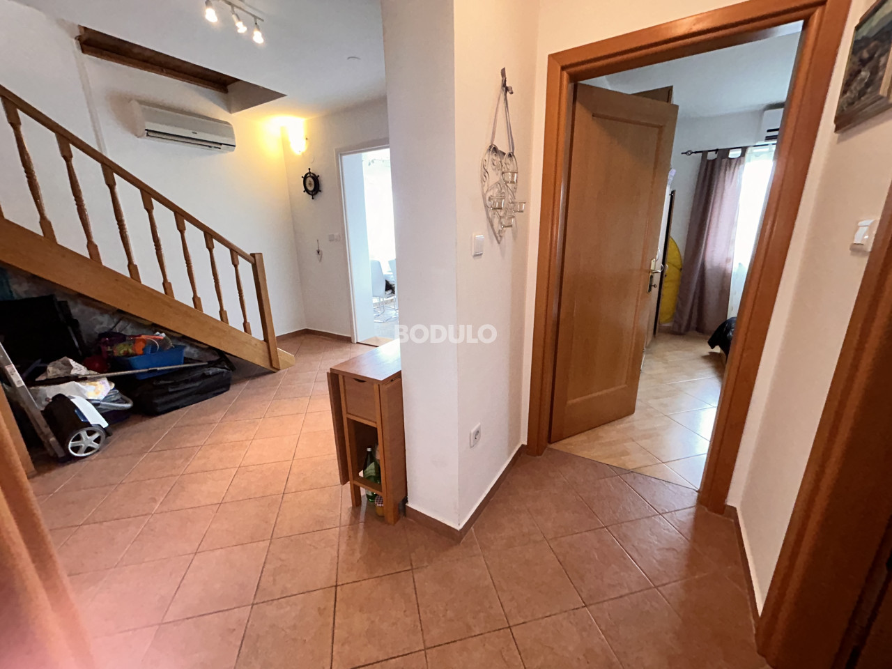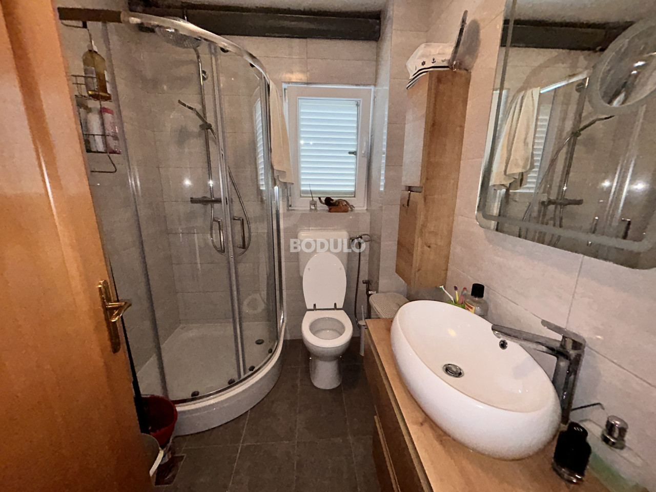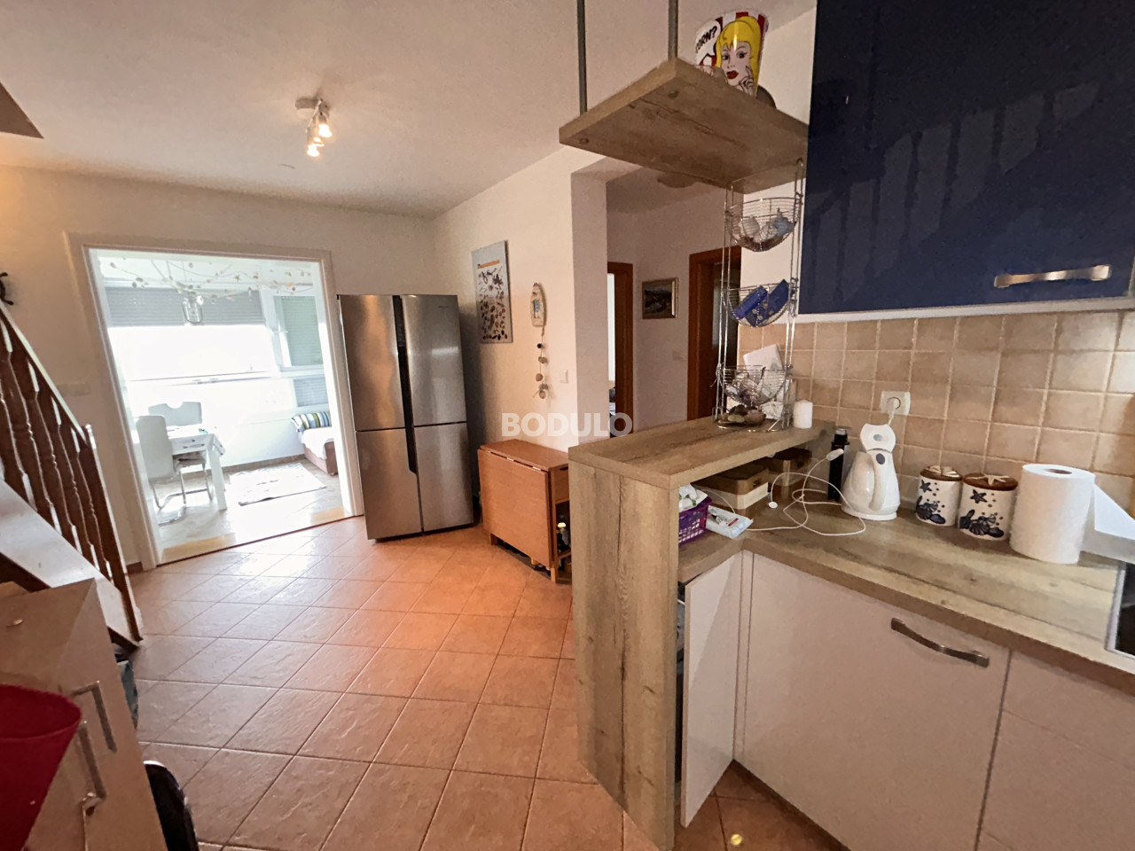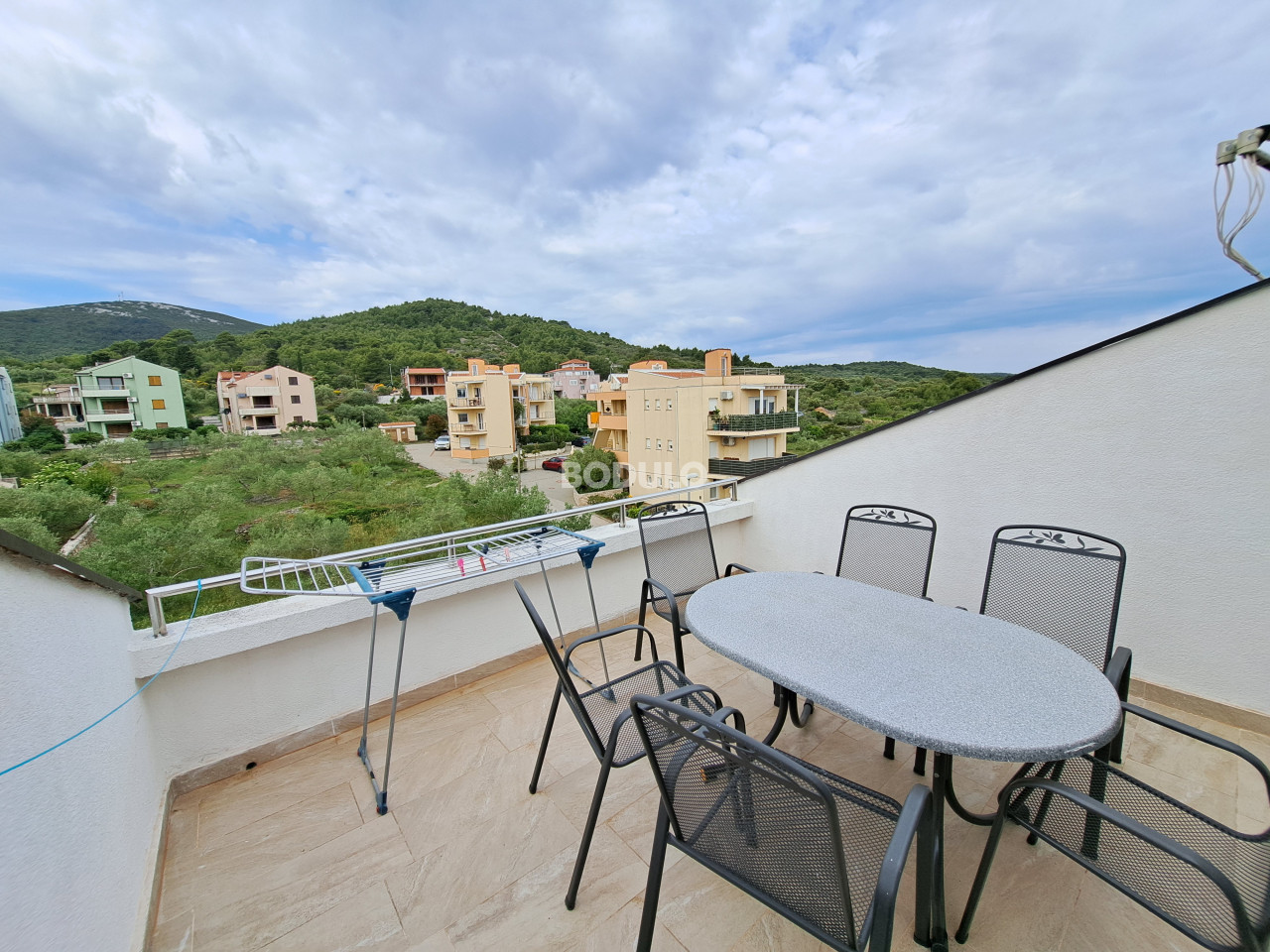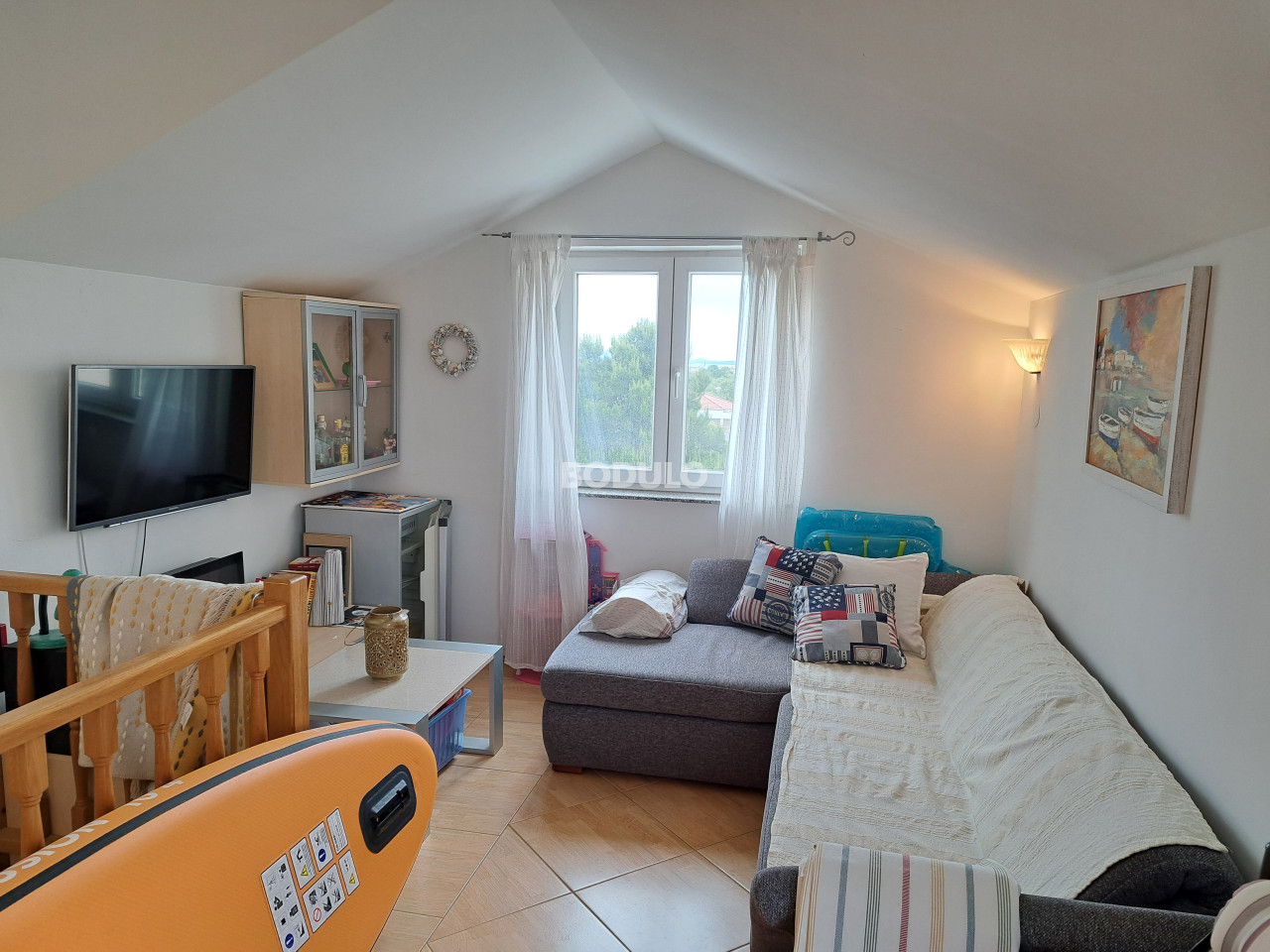 Na udaljenosti od samo 200 metara od mora i lijepo uređene plaže u mjestu Dobropoljana na otoku Pašmanu, na prodaju je kompletno uređen apartman korisne površine 61,06 m2. Apartman se prostire na dvije etaže (drugi kat i potkrovlje). Na donjoj etaži nalaze se dvije spavaće sobe, kupaonica, predsoblje, kuhinja s blagovaonicom i dnevni boravak sa zatvorenom ostakljenom terasom s koje se pruža prekrasan pogled na more. U potkrovlju se nalazi galerija uređena kao dnevni boravak (koja se može koristiti kao dodatna spavaća soba), te prostrana terasa s pogledom na zelenilo. Apartman je potpuno uređen i klimatiziran, te je idealan za uživanje tokom cijele godine. Pripada mu jedno parkirno mjesto.