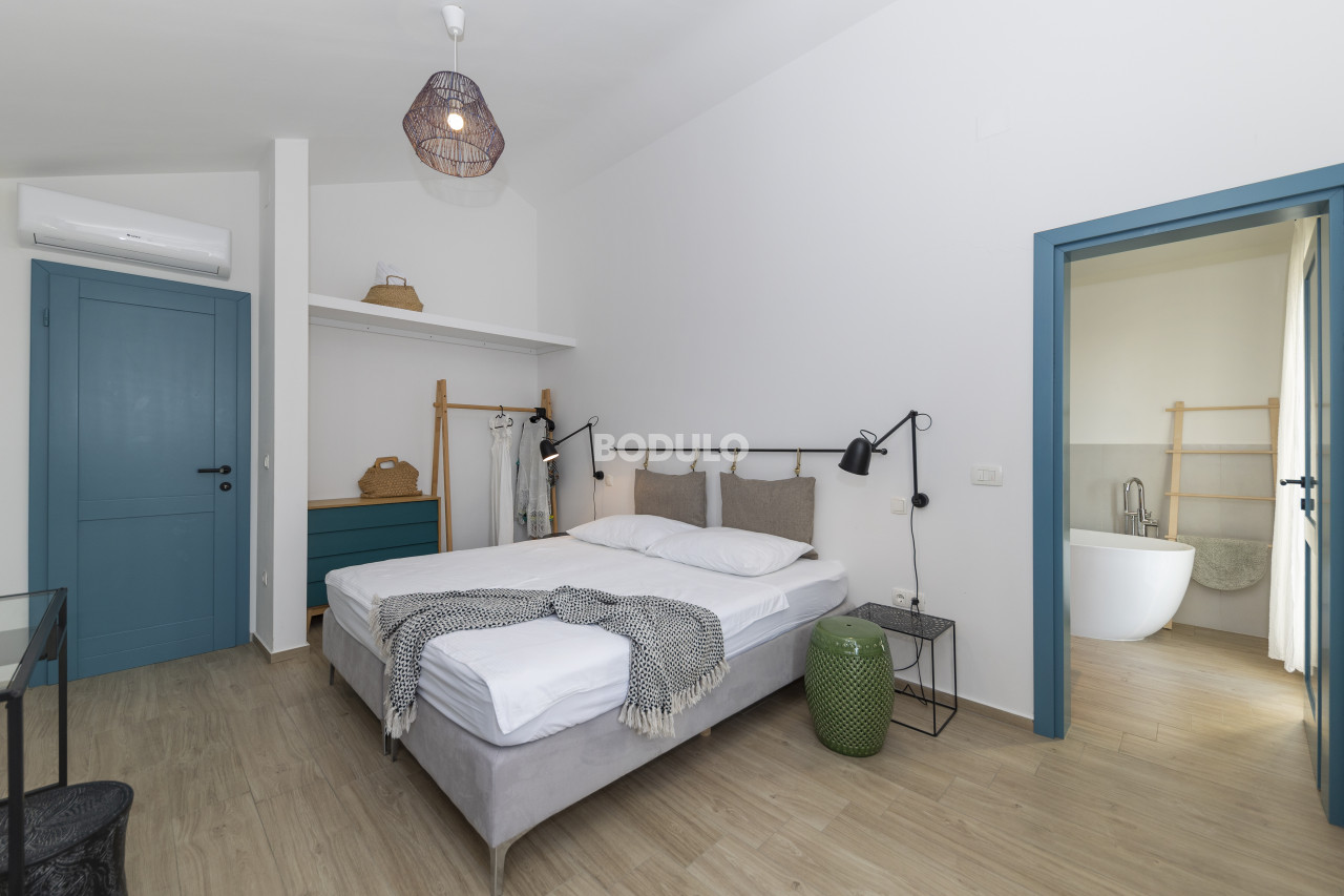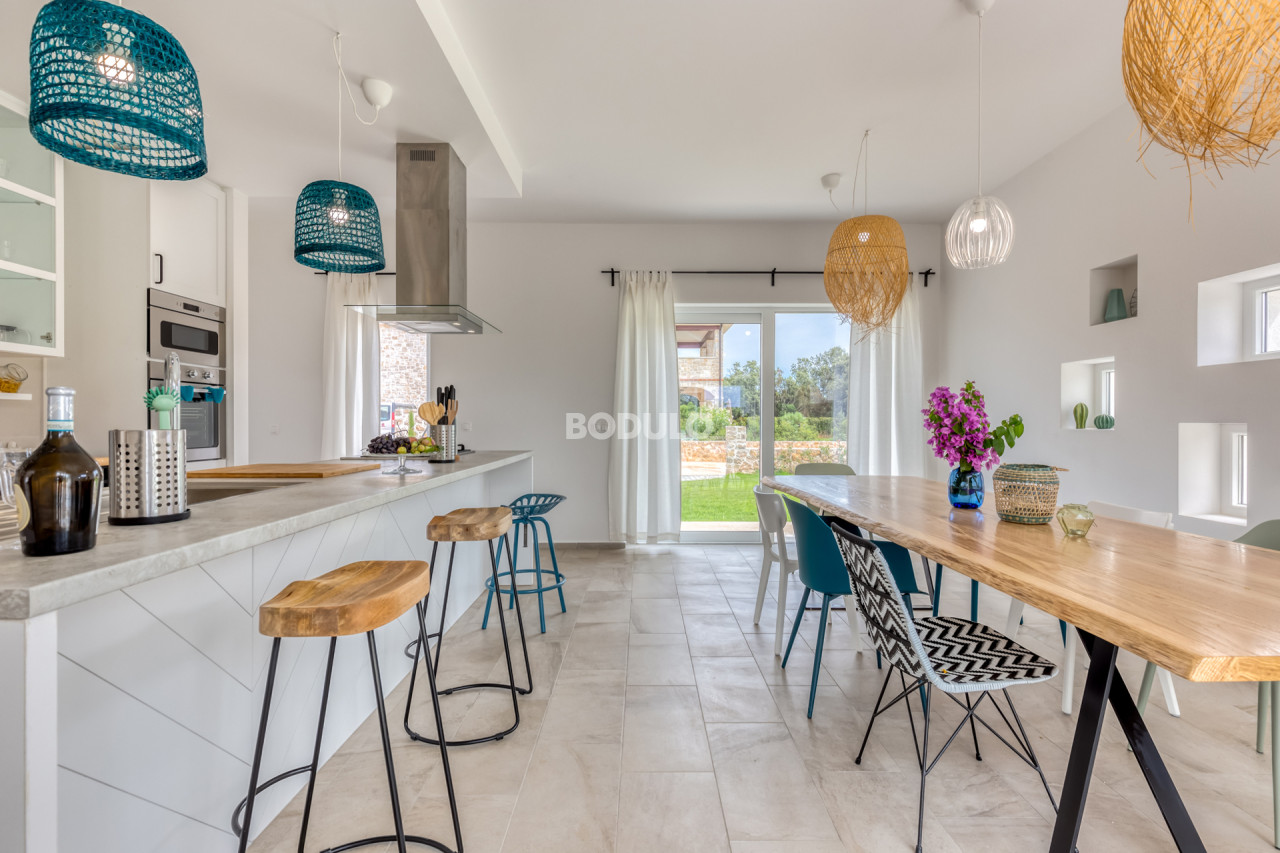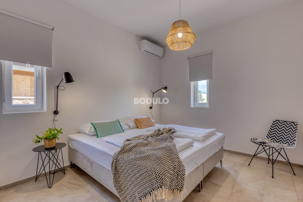 On the island of Ugljan, in the Muline bay, on a plot of land measuring 896 m2, a beautiful stone villa with a swimming pool was built. This villa is a combination of tradition and modern design. Its stone exterior fits perfectly into the Mediterranean ambience, and the interior is equipped with modern and functional furniture that provides comfort and relaxation.