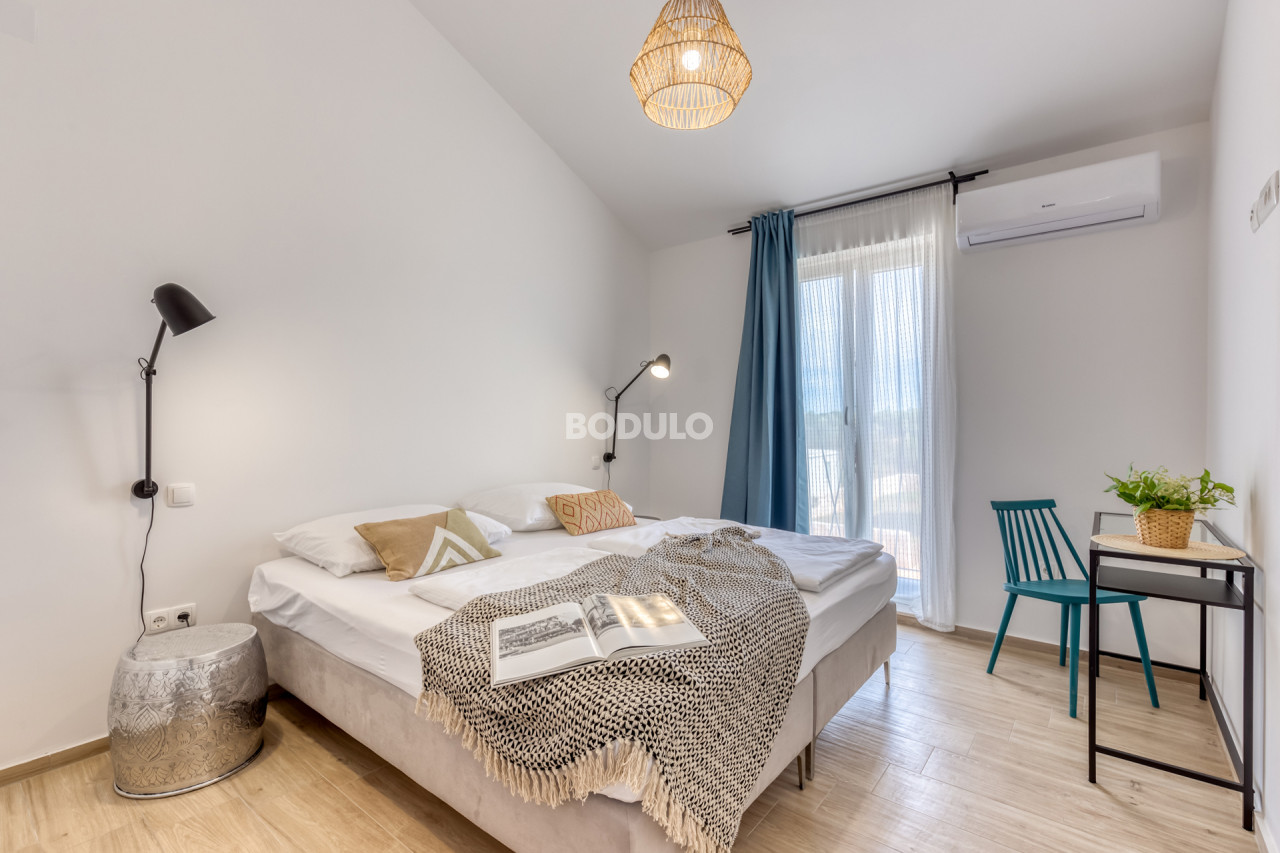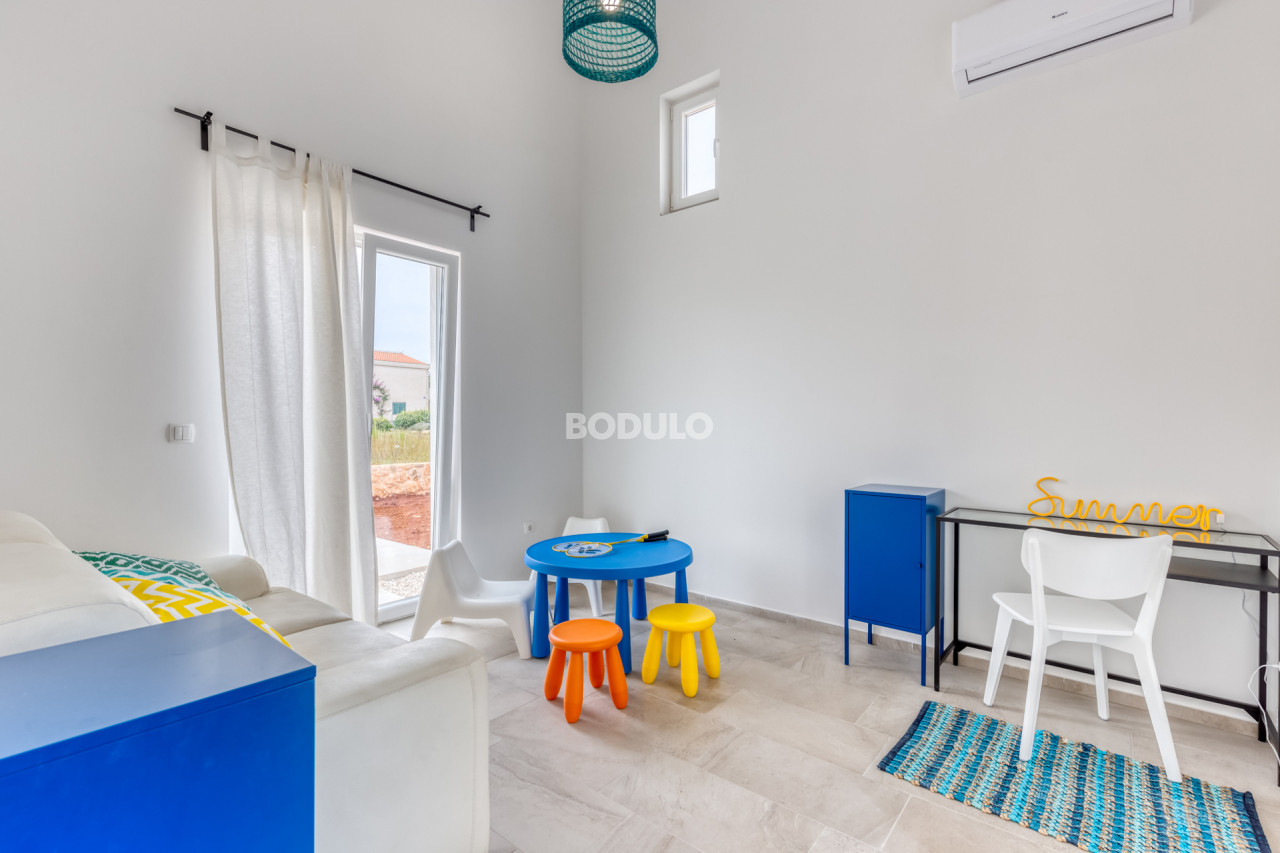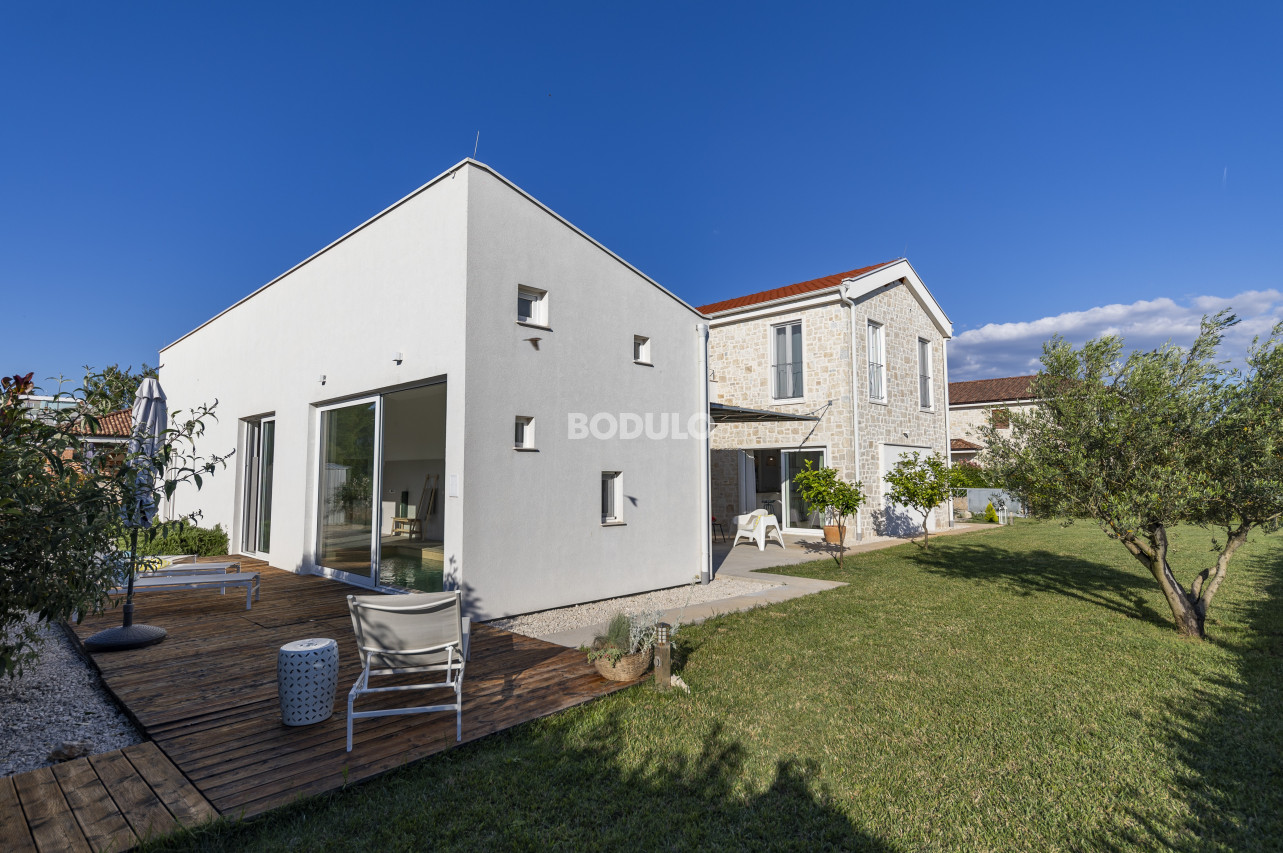 On the island of Ugljan, in the Muline bay, on a plot of land measuring 896 m2, a beautiful stone villa with a swimming pool was built. This villa is a combination of tradition and modern design. Its stone exterior fits perfectly into the Mediterranean ambience, and the interior is equipped with modern and functional furniture that provides comfort and relaxation.