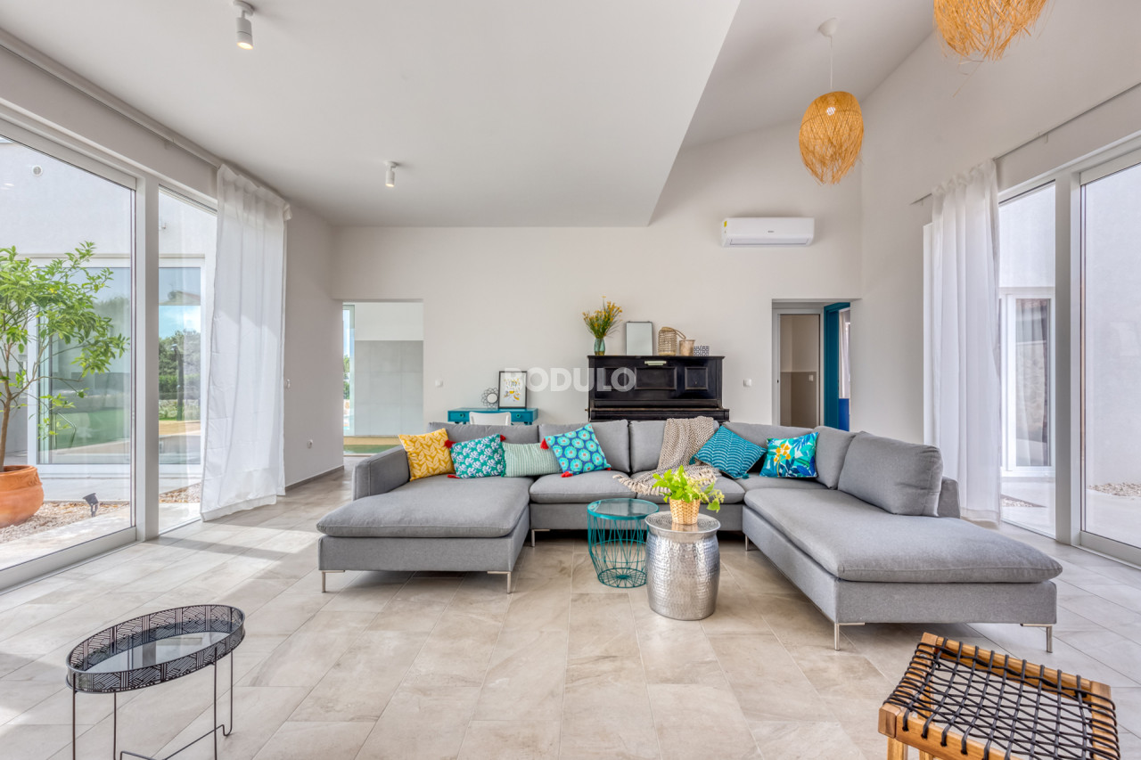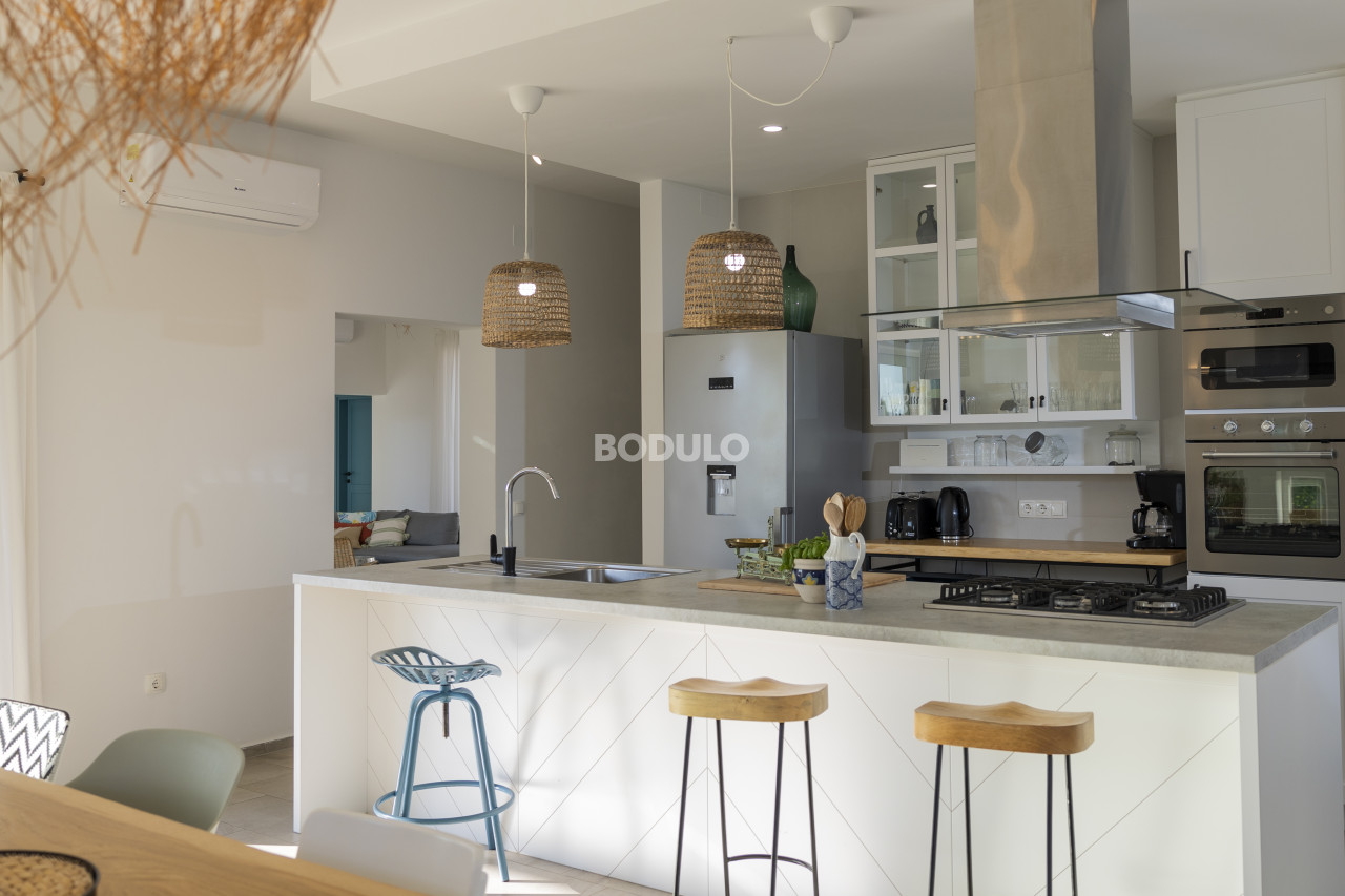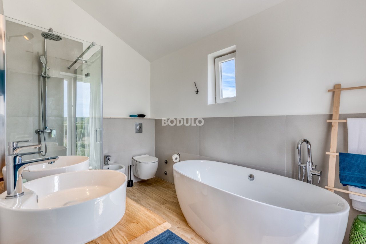 The overall impression of the villa is airy, with plenty of natural light. The rooms are equipped with air conditioning for heating and cooling, and the house also has a chimney and it is possible to install a stove or indoor fireplace.