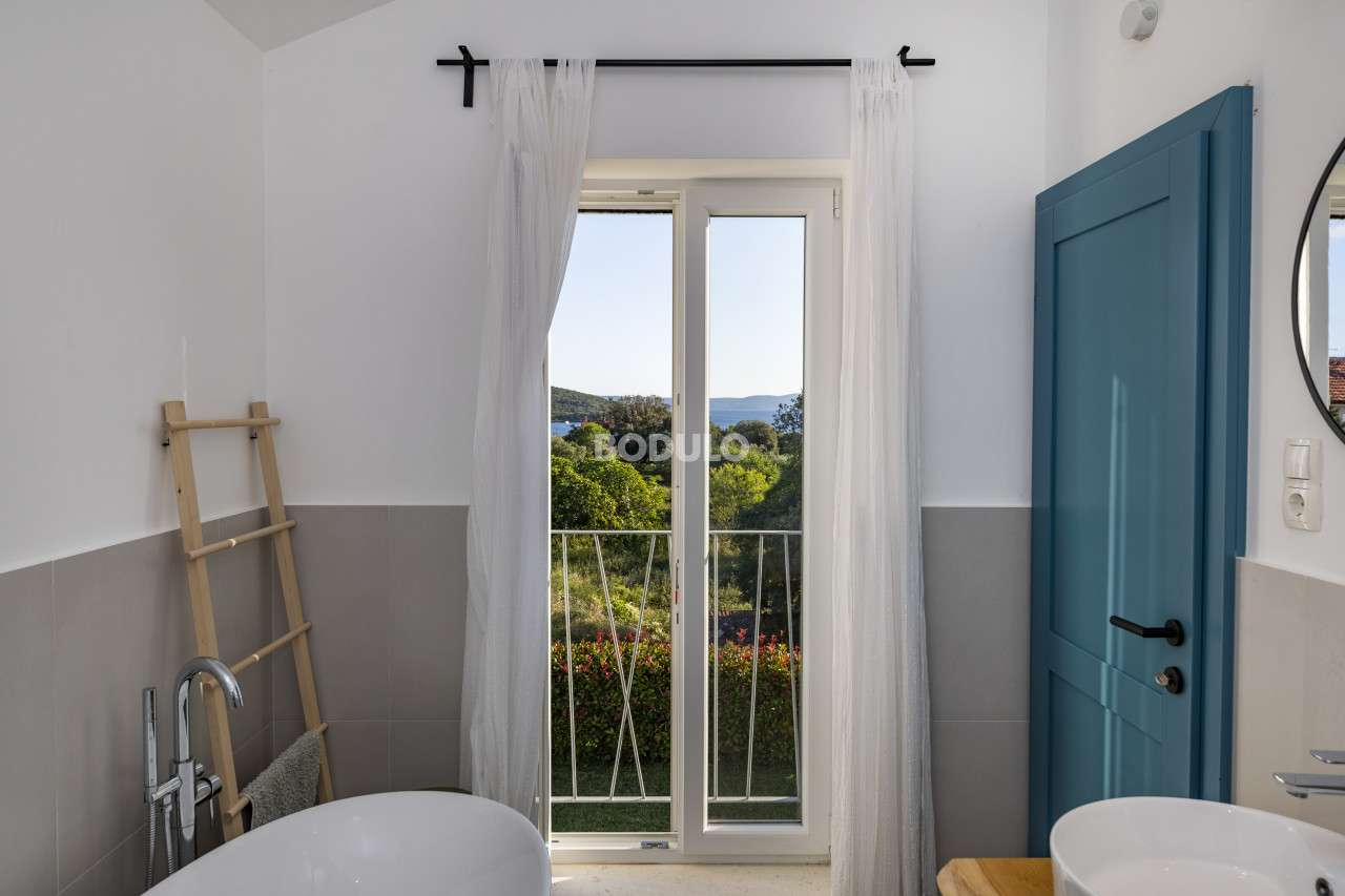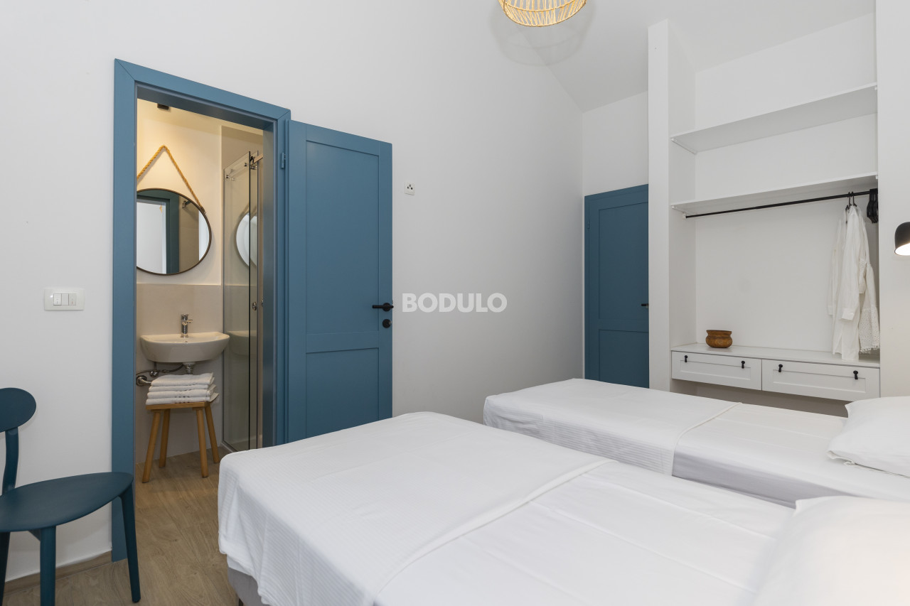 Upstairs are three spacious bedrooms with a bathroom and access to a large shared terrace from which you can enjoy a beautiful view of the sea, enchanting sunsets and complete privacy. The total usable area of the floor is 79 m2.