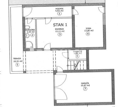 The house also includes a garage of 19.8 m² and a private parking space, while the unfinished attic offers the possibility of conversion — ideal for storage, a workshop, or even a small living space (gallery).