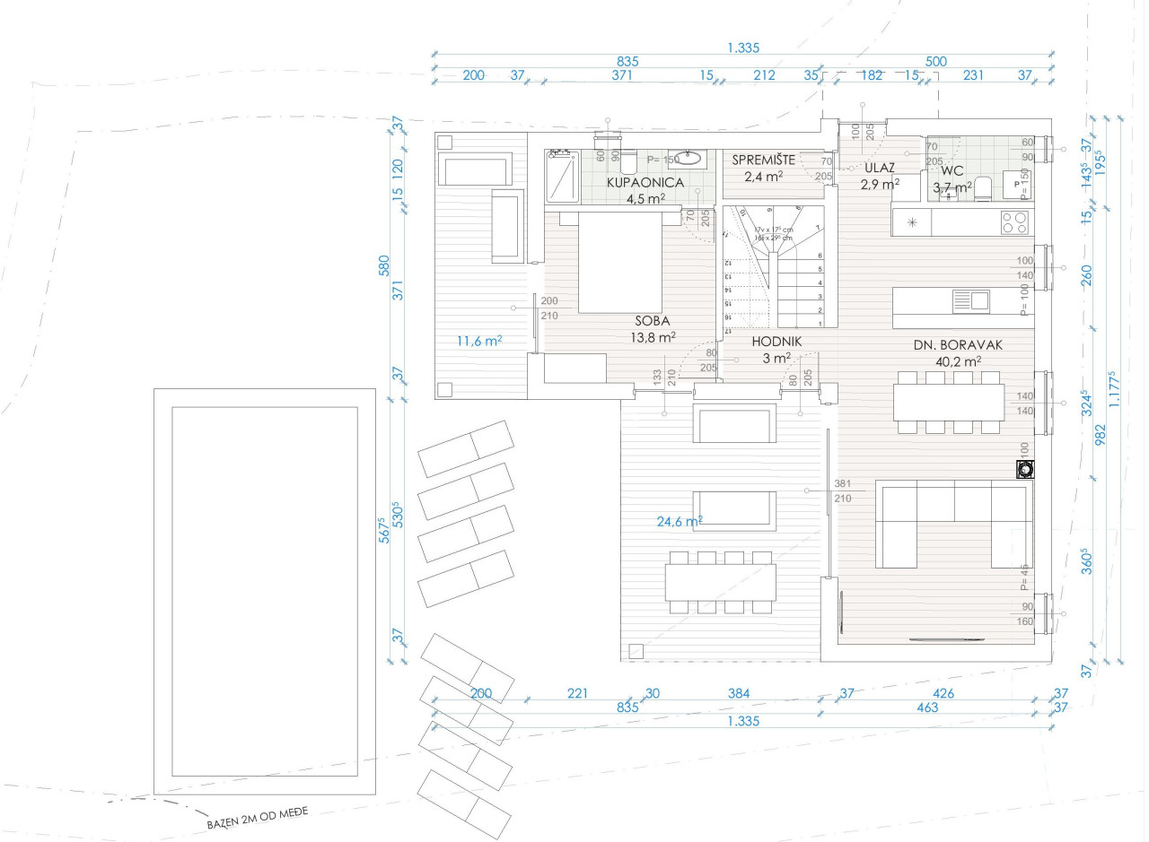 The process of obtaining a building permit for the construction of a family house with one residential unit and a swimming pool is currently underway for this plot.