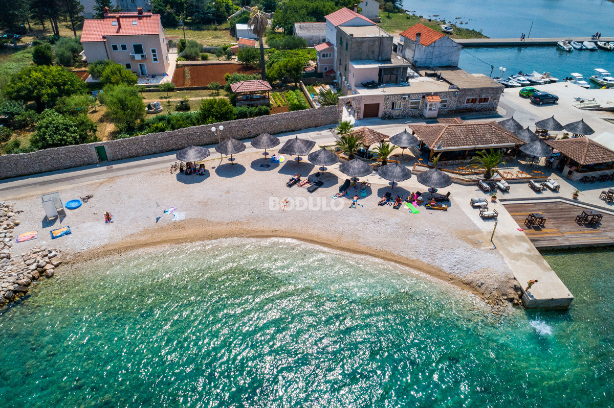 On the first floor there are three bedrooms, two bathrooms, and a covered terrace with a nice sea view. A special highlight is the rooftop terrace, which offers panoramic views stretching across the sea toward Zadar and the Velebit mountain range. Each residential unit also includes two parking spaces. In front of the villa there is a house that blocks the direct view from passers-by and preserves the privacy of the ground floor.
