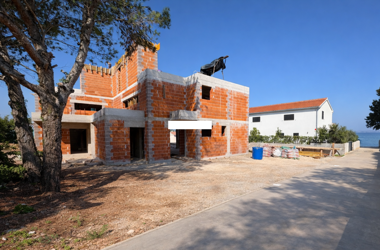 In one of the most desirable locations on the island of Ugljan, only 40 meters from the sea, currently under construction is a modern luxury villa with a gross building area of 382 m², combining contemporary architecture, privacy, and the Mediterranean way of life. The villa is designed as two completely separate residential units, making it ideal for luxury living and vacation stays.
