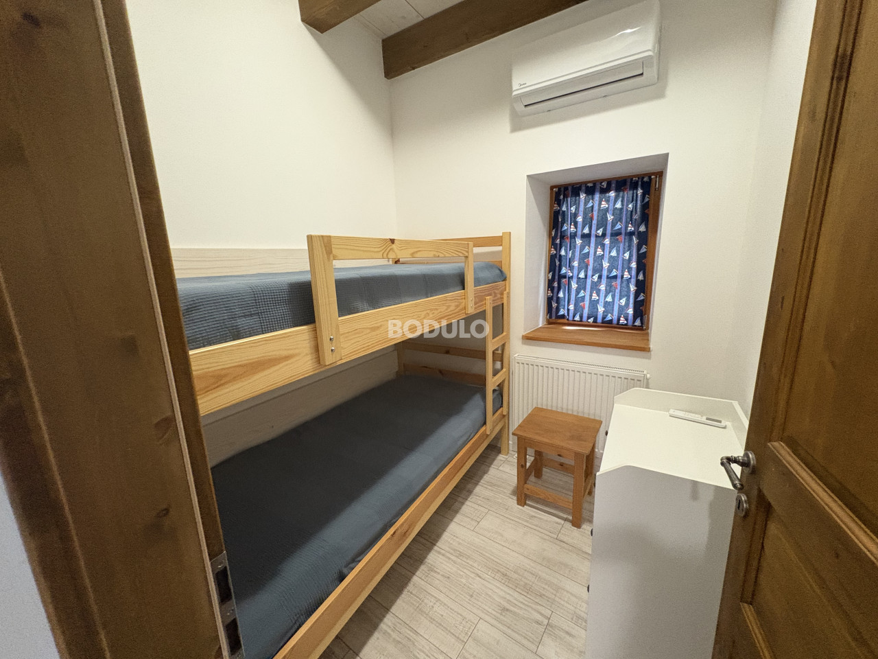 Each apartment consists of a living room with kitchen, two bedrooms, and a bathroom, which makes this property very suitable for rental or for accommodating multiple families. On the ground floor of this house there is also a room housing the machinery and a storage area. The house is equipped with a solar system and a heat pump, which enables energy efficiency, lower costs, and comfortable year-round living.