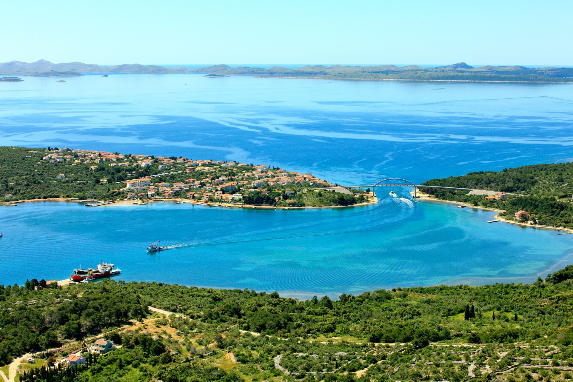 Over the sea straits, dividing Ugljan and Pašman islands, a 210 m long bridge was built in 1973. Next to it lies a big weekend cottage settlement.