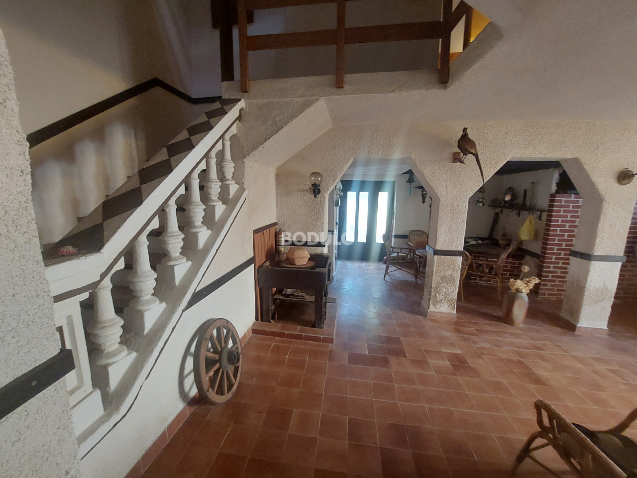 Prizemlje se sastoji prostranog dnevnog boravka, nedovršenog spremišta i prostrorije s ugrađenim roštiljem.