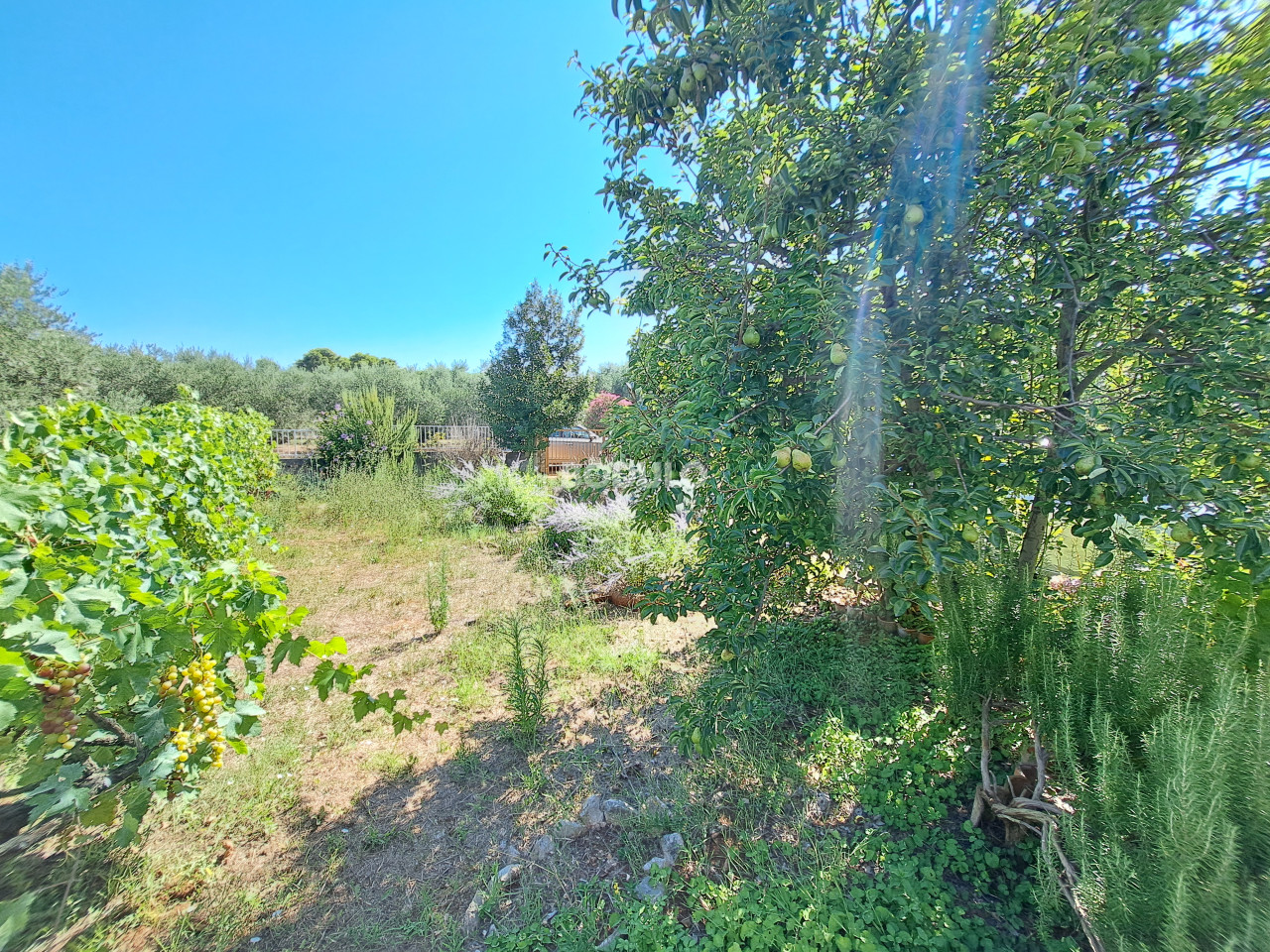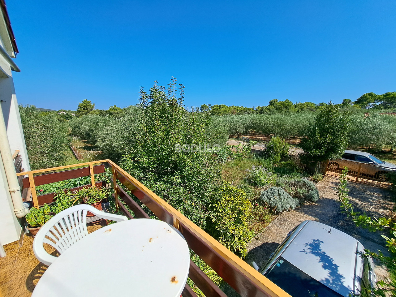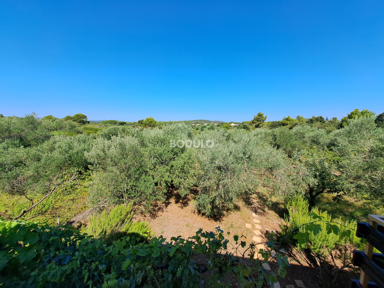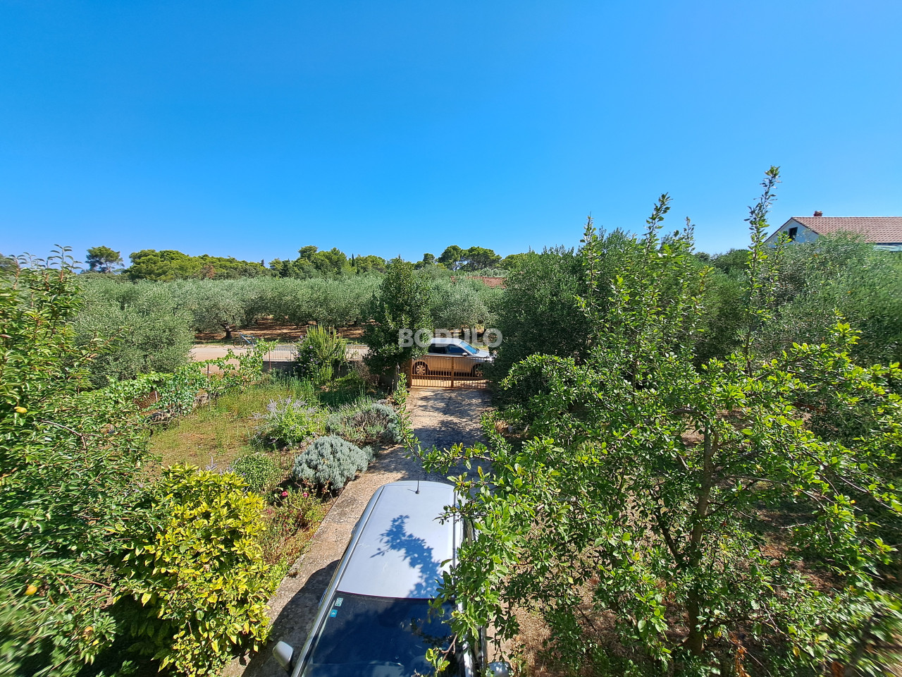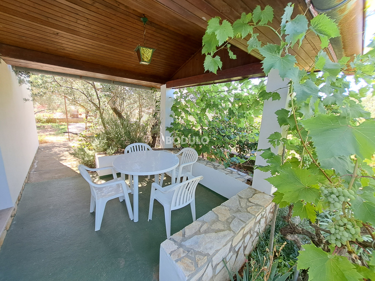 Prostrana okućnica zasađena je stablima masline, agruma i cvijećem, a njena veličina i oblik nudi mogućnost izgradnje još jednog objekta. Nekretnina je po Prostornom planu Općine Preko smještena na rubu građevinske zone što dodatno garantira mir i opuštajuću atmosferu.