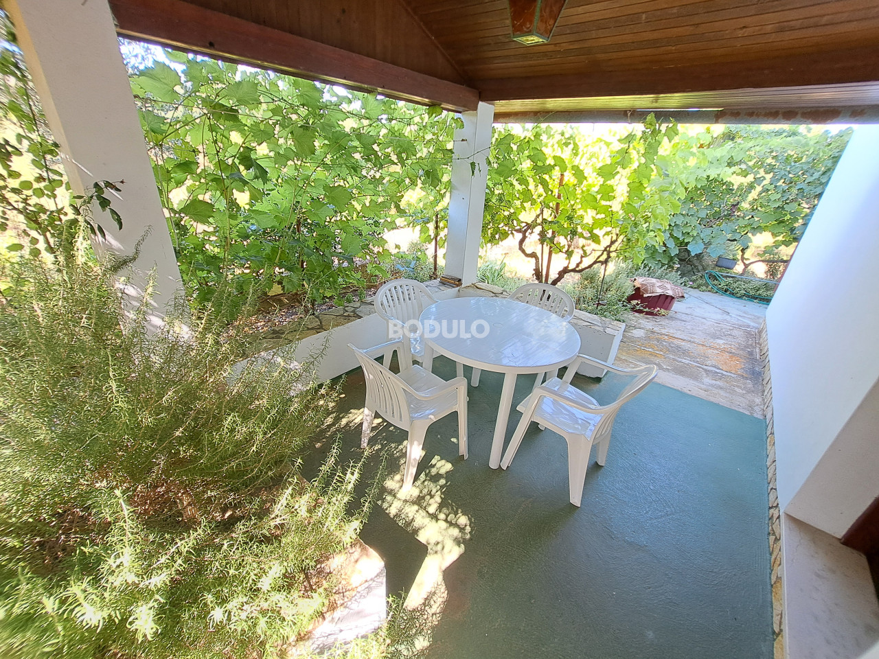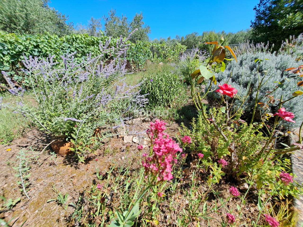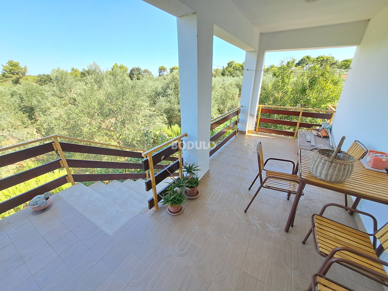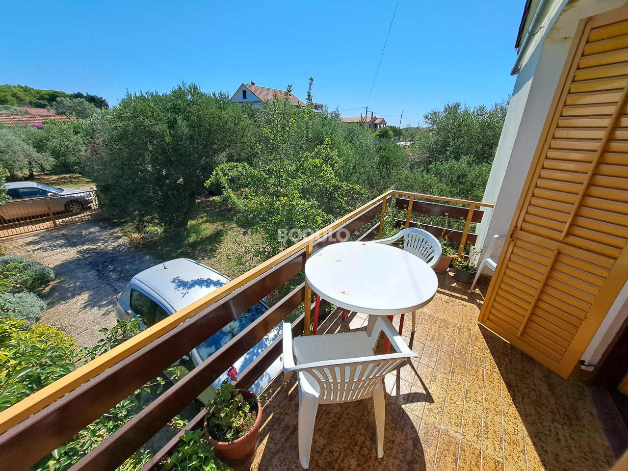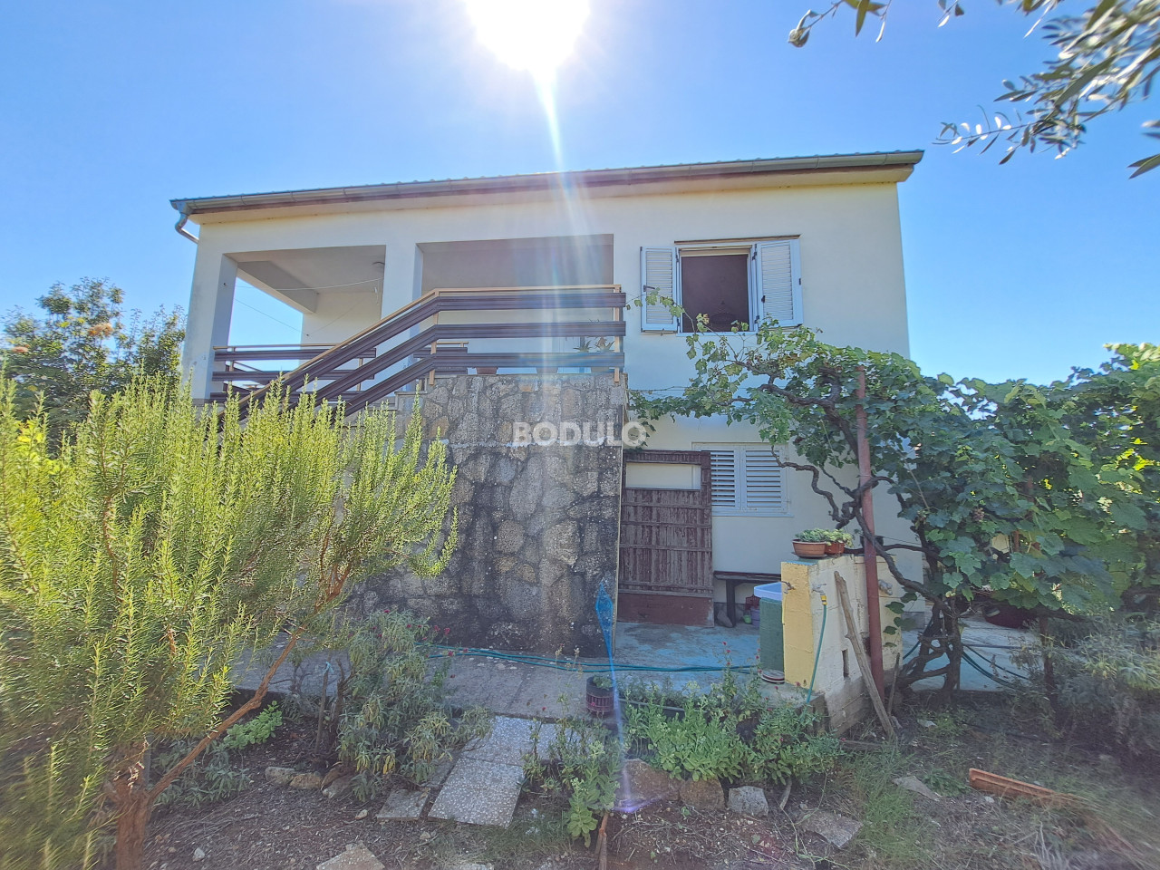 Prostrana okućnica zasađena je stablima masline, agruma i cvijećem, a njena veličina i oblik nudi mogućnost izgradnje još jednog objekta. Nekretnina je po Prostornom planu Općine Preko smještena na rubu građevinske zone što dodatno garantira mir i opuštajuću atmosferu.