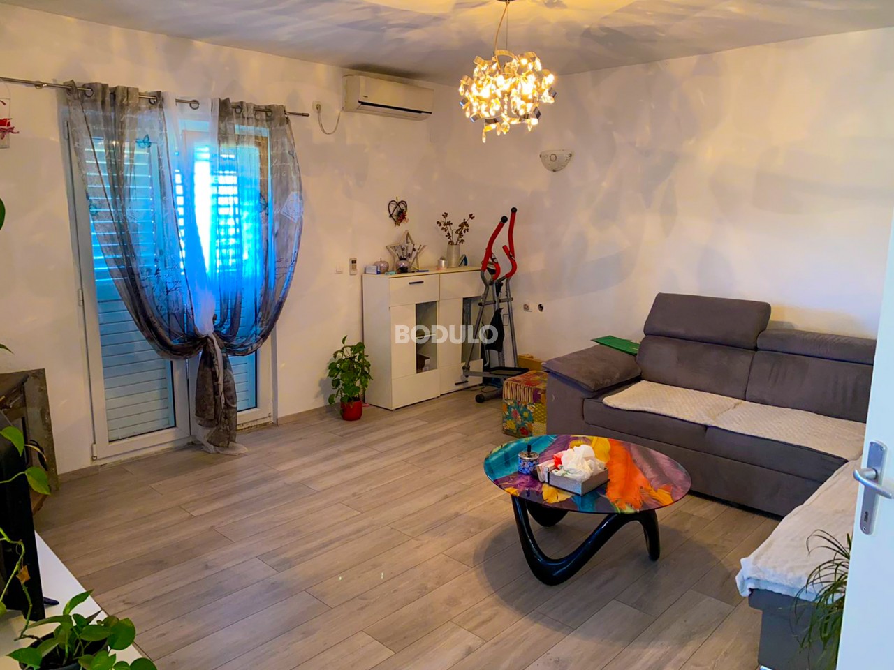 U prizemlju se nalazi uređen stan koji se sastoji od hodnika, kupaonice, jedne spavaće sobe, kuhinje s blagovaonicom i dnevnog boravka.