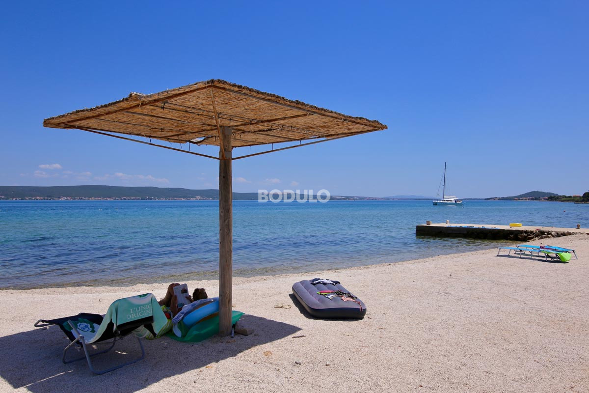Sva dostupna infrastruktura nalazi se u neposrednoj blizini. Zemljište je udaljeno od mora i lijepo uređenih plaža 170 m, odnosno zračnom linijom samo 80m , što ga čini savršenim izborom za ljubitelje blizine plaže i mirnog otočkog ritma.